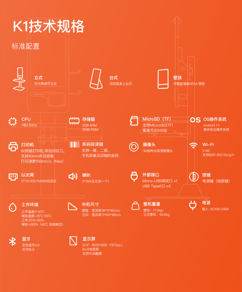 K1系列立柱式自助收銀機(jī)